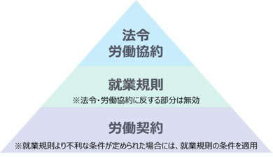 雇用契約書は個別の取り決め、就業規則は全体のルールです。両者が矛盾していると、紛争時に労働者に有利な解釈となるおそれがあります。公平性を担保するためにも就業規則で統一基準を明確化することが重要です。